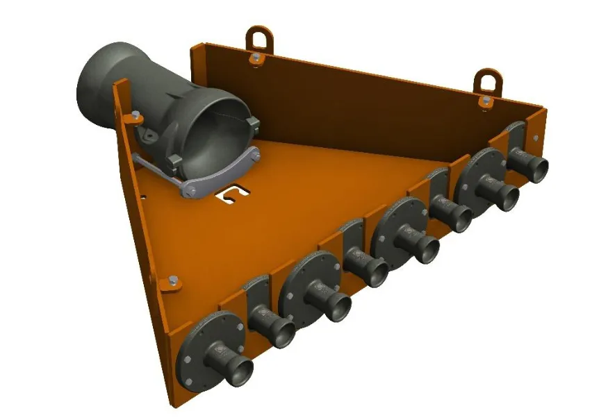 Chamber to transition from one large size articulated pipe (PS170, PS180, PS210,PS230, PS260, PS280) to 8 (max) smaller size PS055/500/9 orPS076/500/09 articulated pipe.